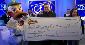 (Uniondale, N.Y., Feb. 28, 2026) – On Saturday, QuackerJack stopped by the Catholic Faith Network studios in Uniondale for their Annual Telethon. QJ and Ducks Human Resources/Office Manager, Christine Blumenauer, enjoyed…