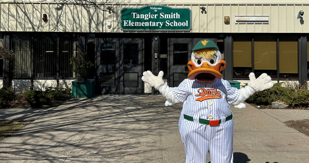 QJ popped in to eight different schools throughout the Long Island community. The lovable mascot surprised all of his friends at each school during arrival or dismissal, saying hello to all of the students as they headed to class or went home for the day. QuackerJack got the children excited for each of the schools’ group outings during the 2026 Ducks season.